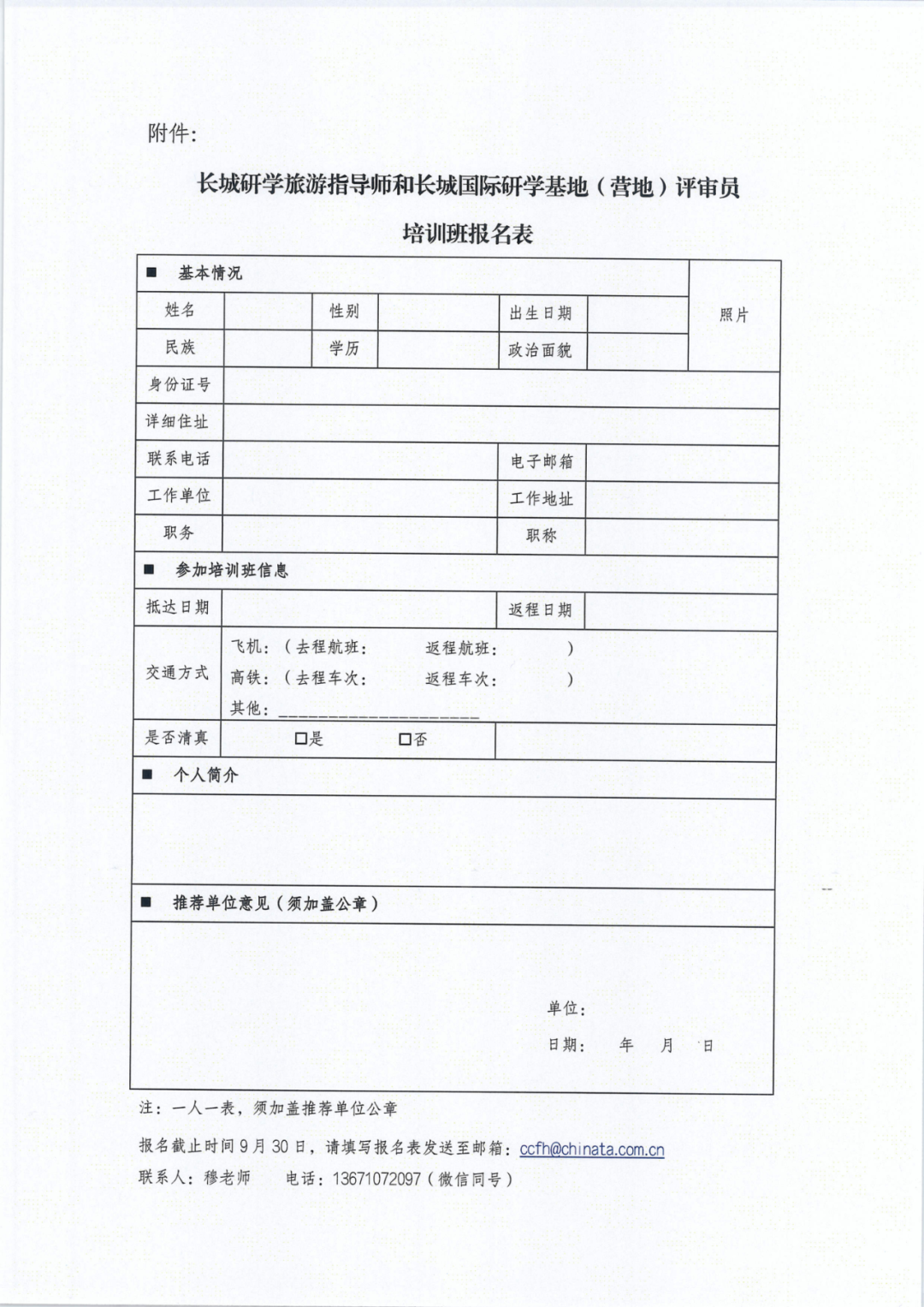 长城研学旅游指导师和长城国际研学基地(营地)评审员培训班报名表.docx